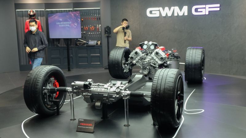 Mengutip informasi Autoindustriya, GWM GF dibangun di atas platform mesin tengah khusus, yang mengusung penggunaan jantung mekanis V8 PHEV dengan dukungan Twin-Turbo 4.0 liter. Tidak sekeda pamer, namun kabarnya perusahaan ini juga akan mengikutkan mobil konsep supercar ini pada ajang balap.